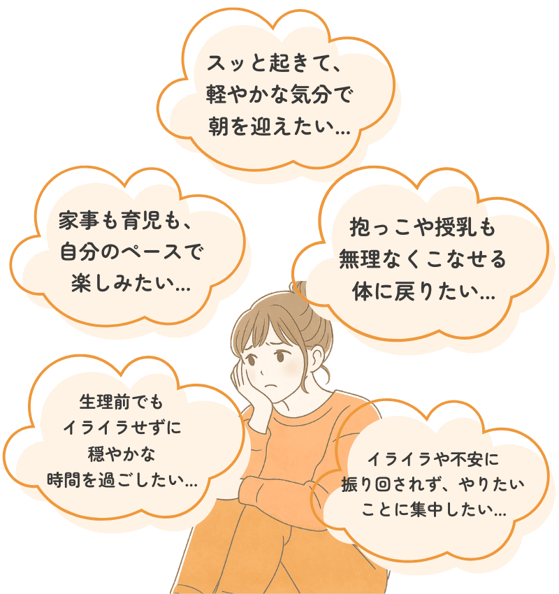 女性特有のつらさに悩んでいる方も、お仕事や日々の疲れを感じている方も、どうぞお気軽にご相談くださいね。